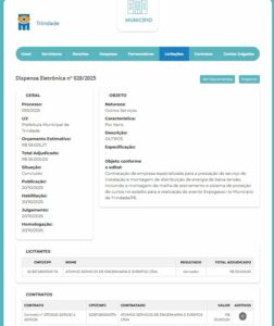 Apenas seis dias depois, em 20 de outubro de 2025, foi registrado outro procedimento com a mesma numeração 028/2025, desta vez uma Dispensa Eletrônica para serviço de instalação e montagem elétrica (baixa tensão e aterramento). O contrato foi firmado com a empresa Atumos Serviços de Engenharia e Eventos LTDA, com valor estimado de R$ 59.025,27 e valor real de R$ 55.000,00.